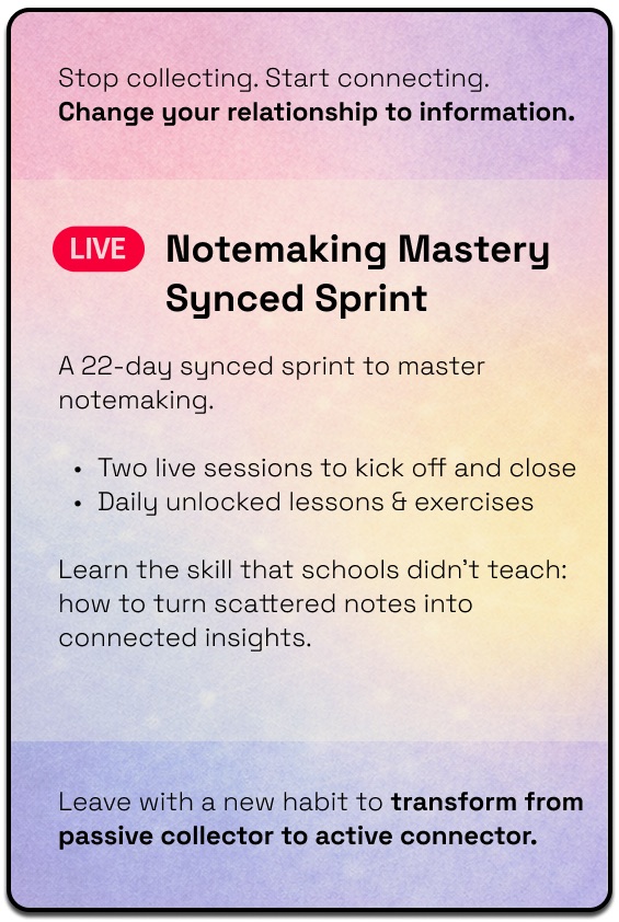 ...is a synced sprint mini-cohort that teaches and trains the skill that schools didn't: notemaking.